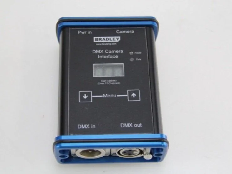 This DMX interface enables any of our remote PTZ camera systems to be controlled via DMX. It features automatic light level switching, Run/Stop for recorders, PPM & S-Bus for gimbals, and CCU control of many ptz camera types.